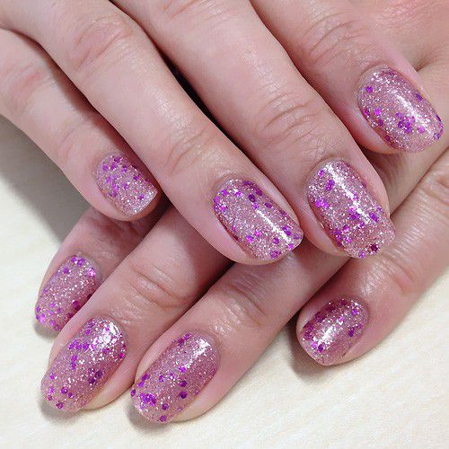 ピンクのイレギュラーラメのデザインネイル、フェアリーテールエンディングです。